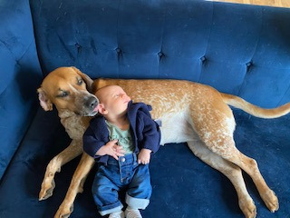 The pups also love their baby. Just as we expected their personalities have aligned perfectly to their relationship with August. Maddy is the momma, Pepper thinks it's her baby (because Pepper thinks everything is hers), and Tank is chilling out in the corner wondering where his attention and snacks are coming from, LOL! They come in from their afternoon walks and run around until the spot him. Of course they have to make sure he is still here!